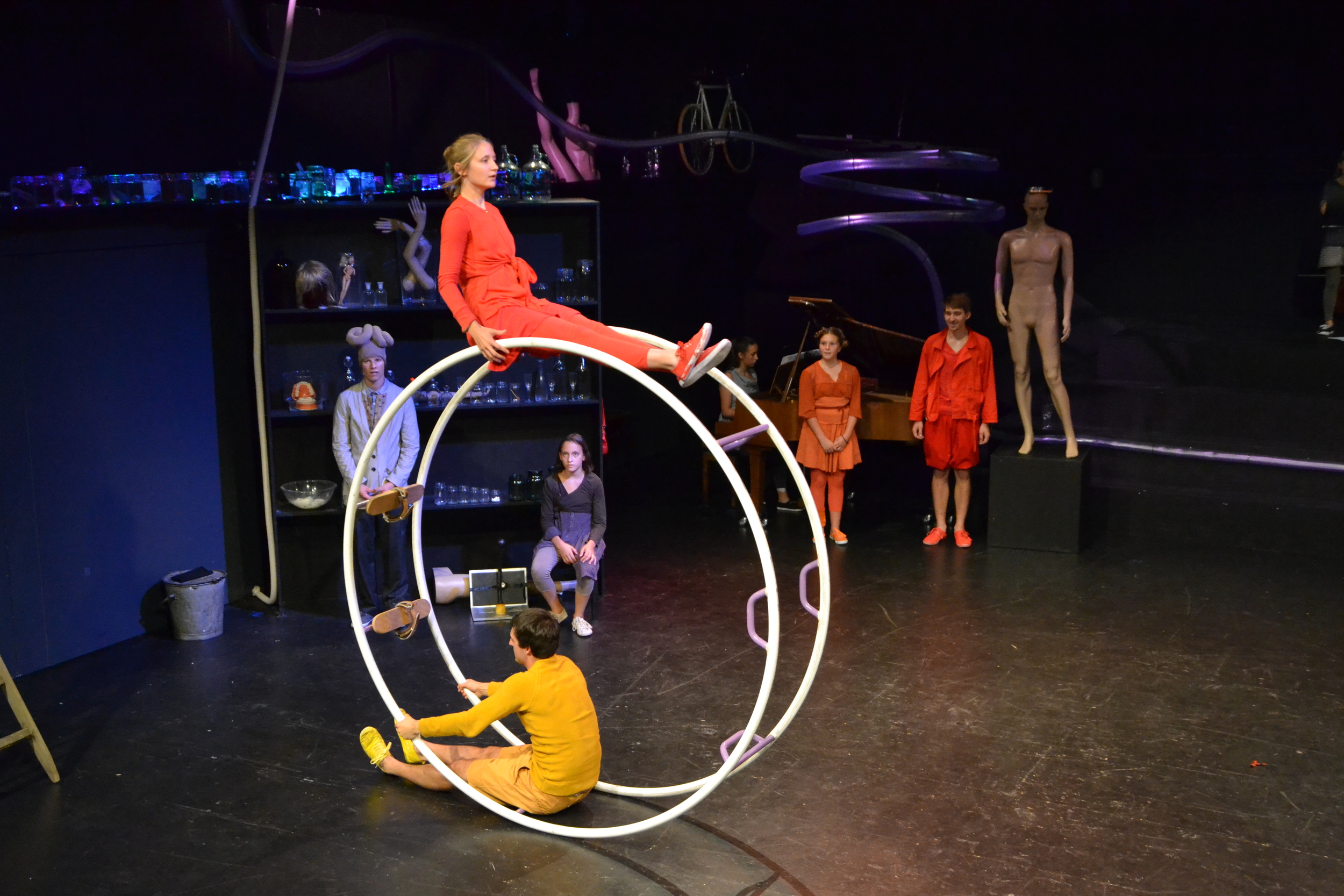 Theater, Artistik und Live-Musik! - Mit Operation Olimpia erzählten wir eine rasante Geschichte in einem verrückten Labor. Die 14 jungen Spielerinnen und Spieler zeigten die Welt als Labor des Wissenschaftlers Reynard. Rund um Forschende und Testpersonen herrschte absonderliches Grauen genauso wie der beflügelnde Wunsch vom ewigen Leben.