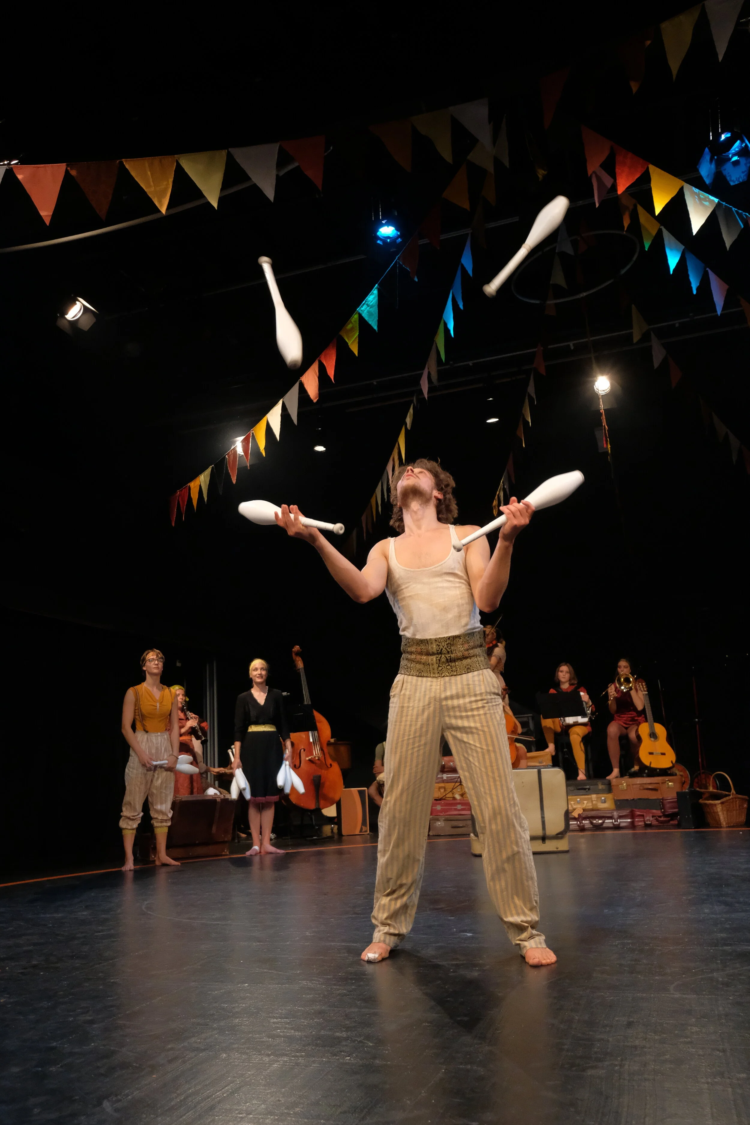 In “Erlemin und der Floh” zaubern skurrile Gaukler und feixen aufmüpfige Flöhe – der Jugendzirkus Tortellini präsentiert einen musikalischen Flohzirkus sondergleichen. Die 10 jungen Artistinnen und Artisten verwandeln den Theater Pavillon in eine Manege und erzählen eine Geschichte von Macht und Gemeinschaft – verwoben mit mitreissender Artistik und berührender Musik